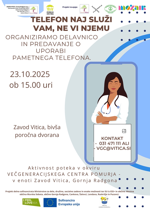 Zavod Vitica vabi na delavnico in predavanje o uporabi pametnega telefona, ki bo v četrtek, 23. 10. 2025 ob 15. uri. Dogodek bo potekal v prostorih bivše poročne dvorane.