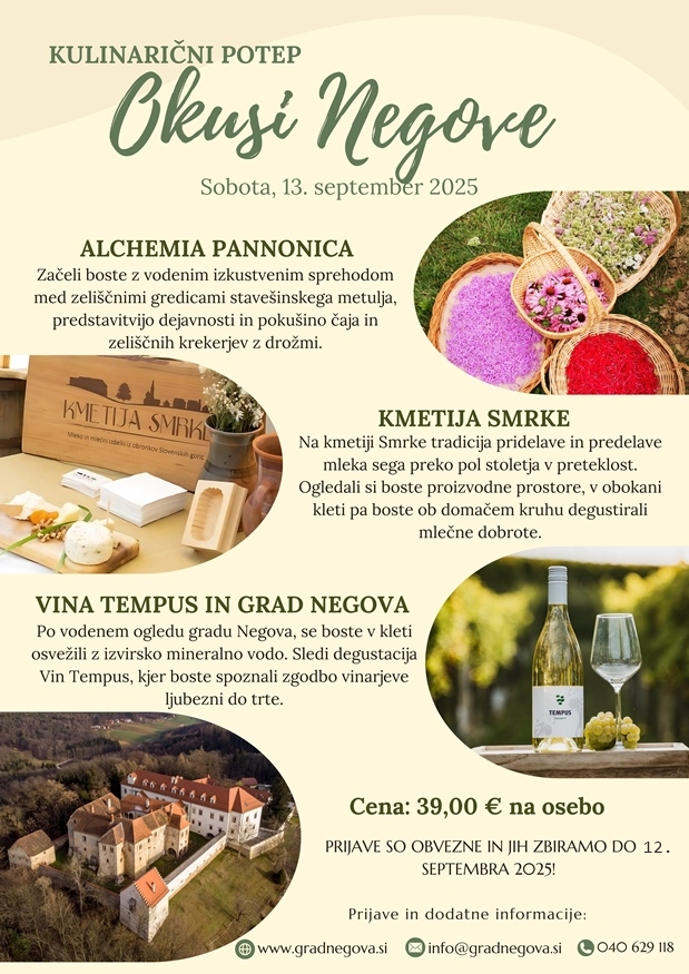 Prijave in dodatne informacije: info@gradnegova.si oziroma na telefonski številki 040 629 118.