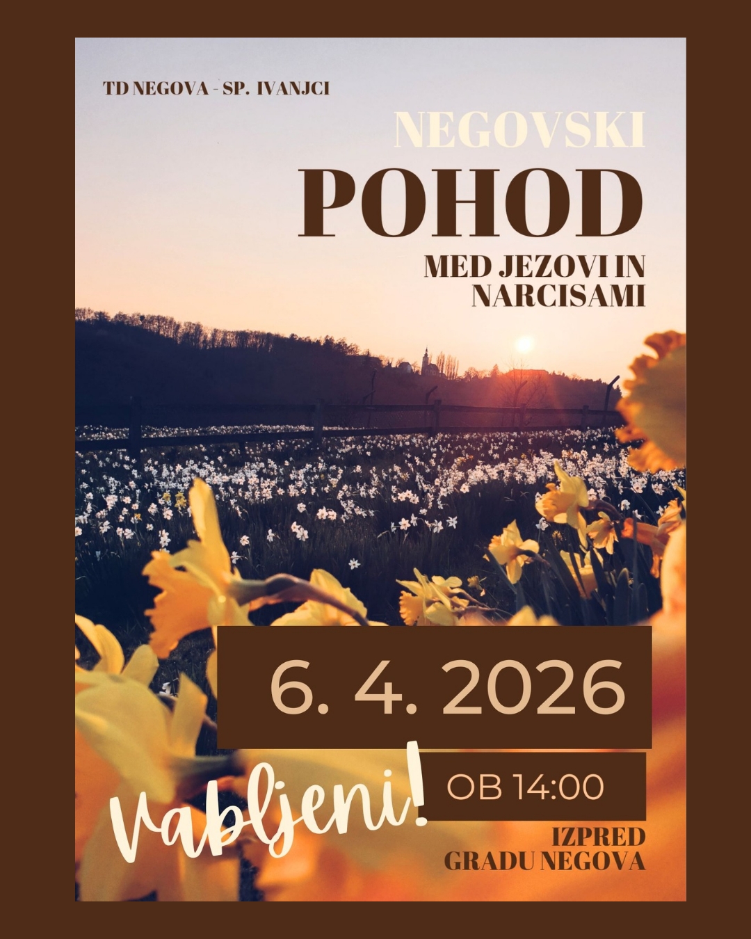 Vabimo vas na Negovski pohod med jezovi in narcisami, ki bo potekal v ponedeljek, 6. aprila 2026.